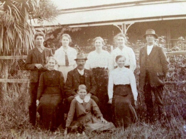 “You will know where this is taken. Irene Iles from N.Z. is standing between Sarah and Elvie and you will know Tom by his curls. A.H.I”